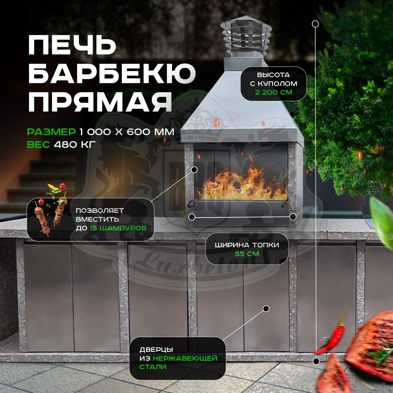 3. Печь барбекю малой ширины топки – 55 см, идеально подходящая для узких семейных вечеров