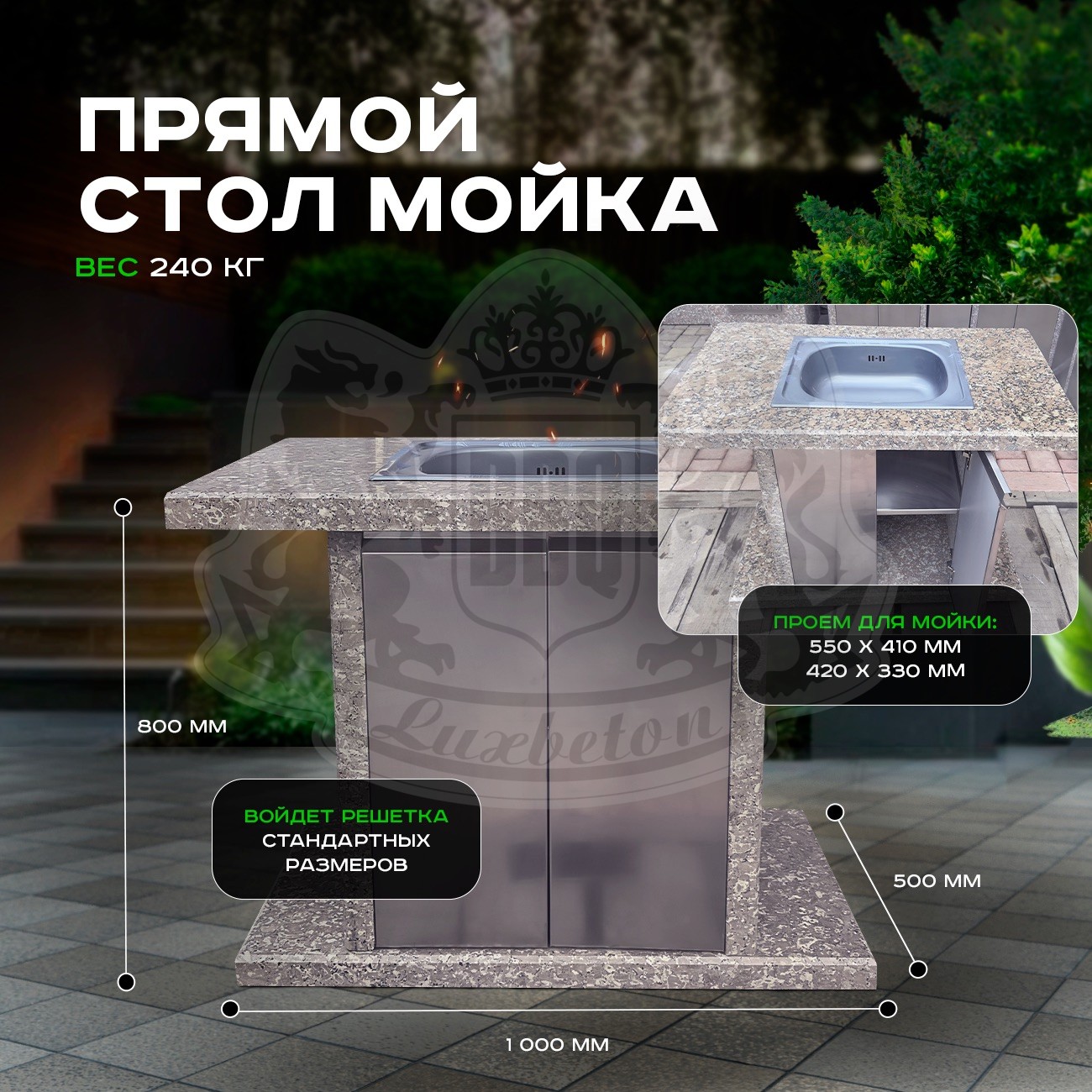 4. Стол с мойкой для удобства мытья продуктов и посуды без необходимости перемещаться в дом.
