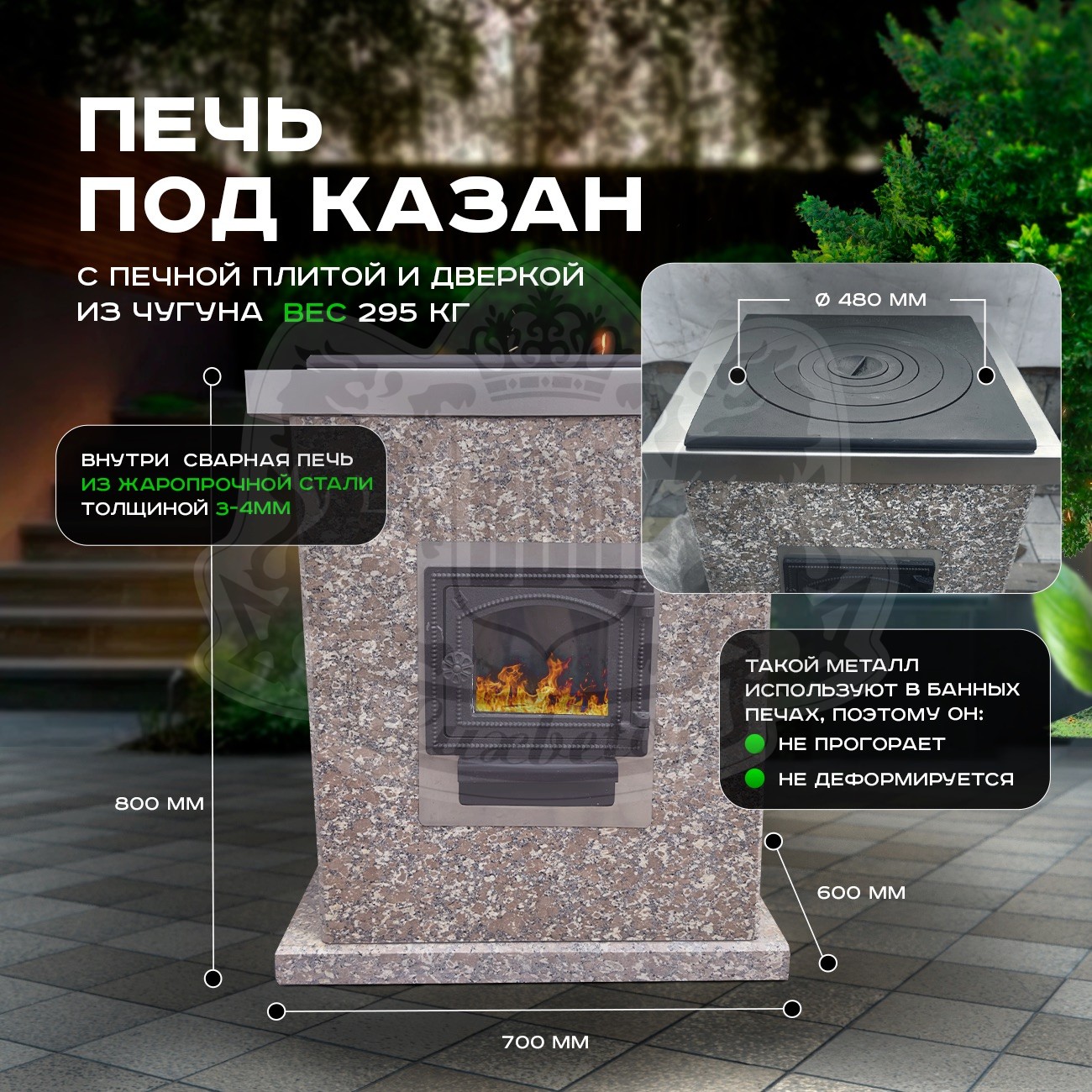1. Печь под казан с функциональной плитой из чугуна