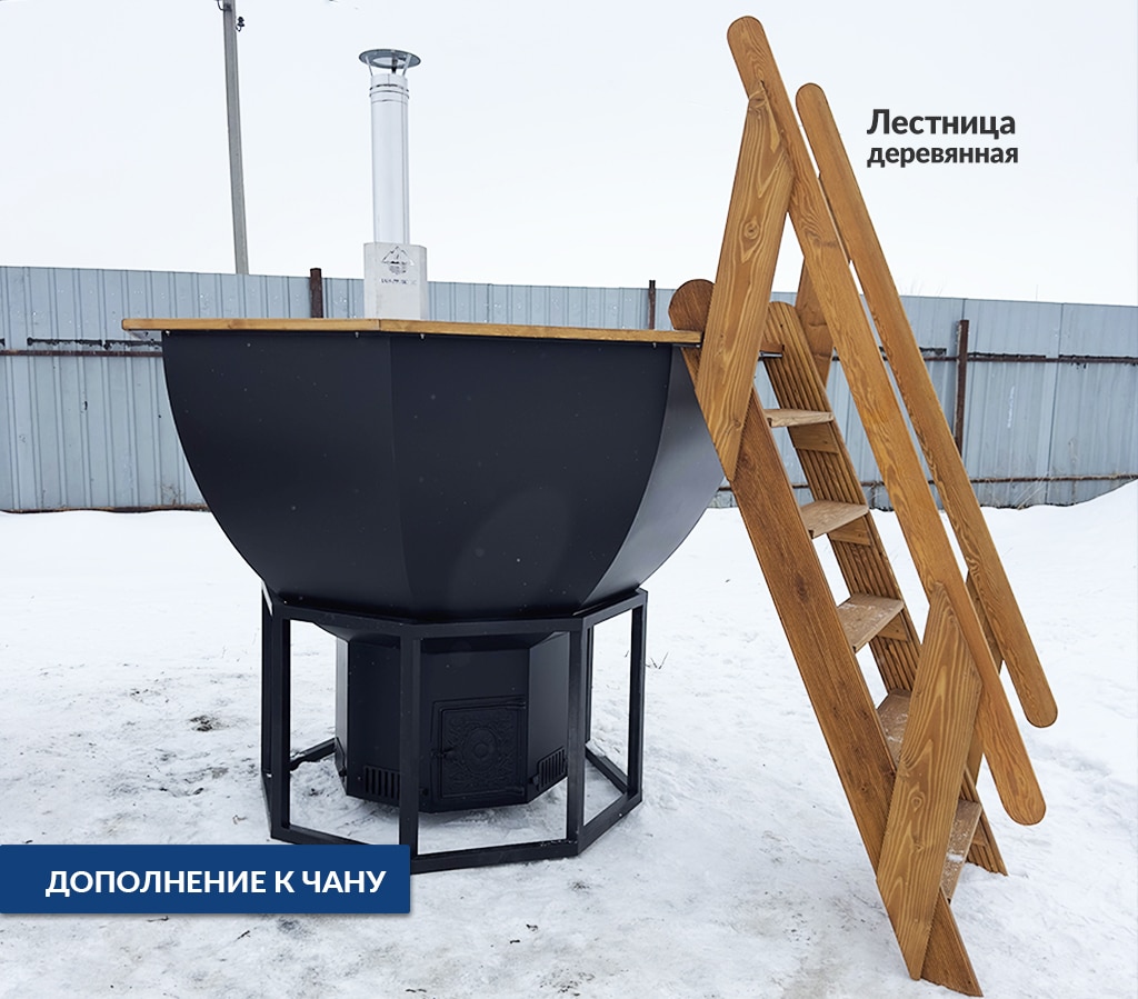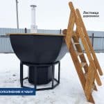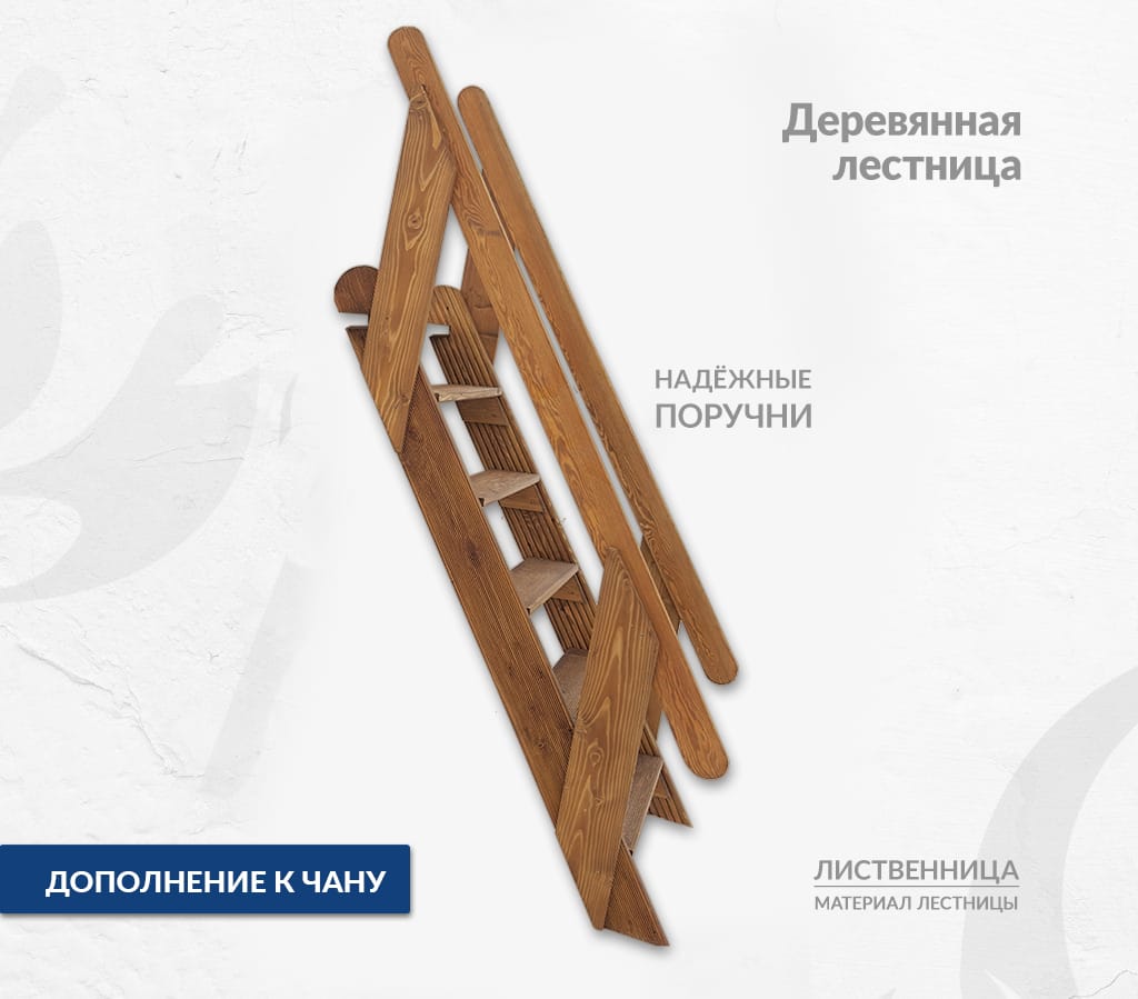 Надёжная и неприхотливая лестница из лиственницы с удобными поручнями и ступенями. Подходит для чана любого размера