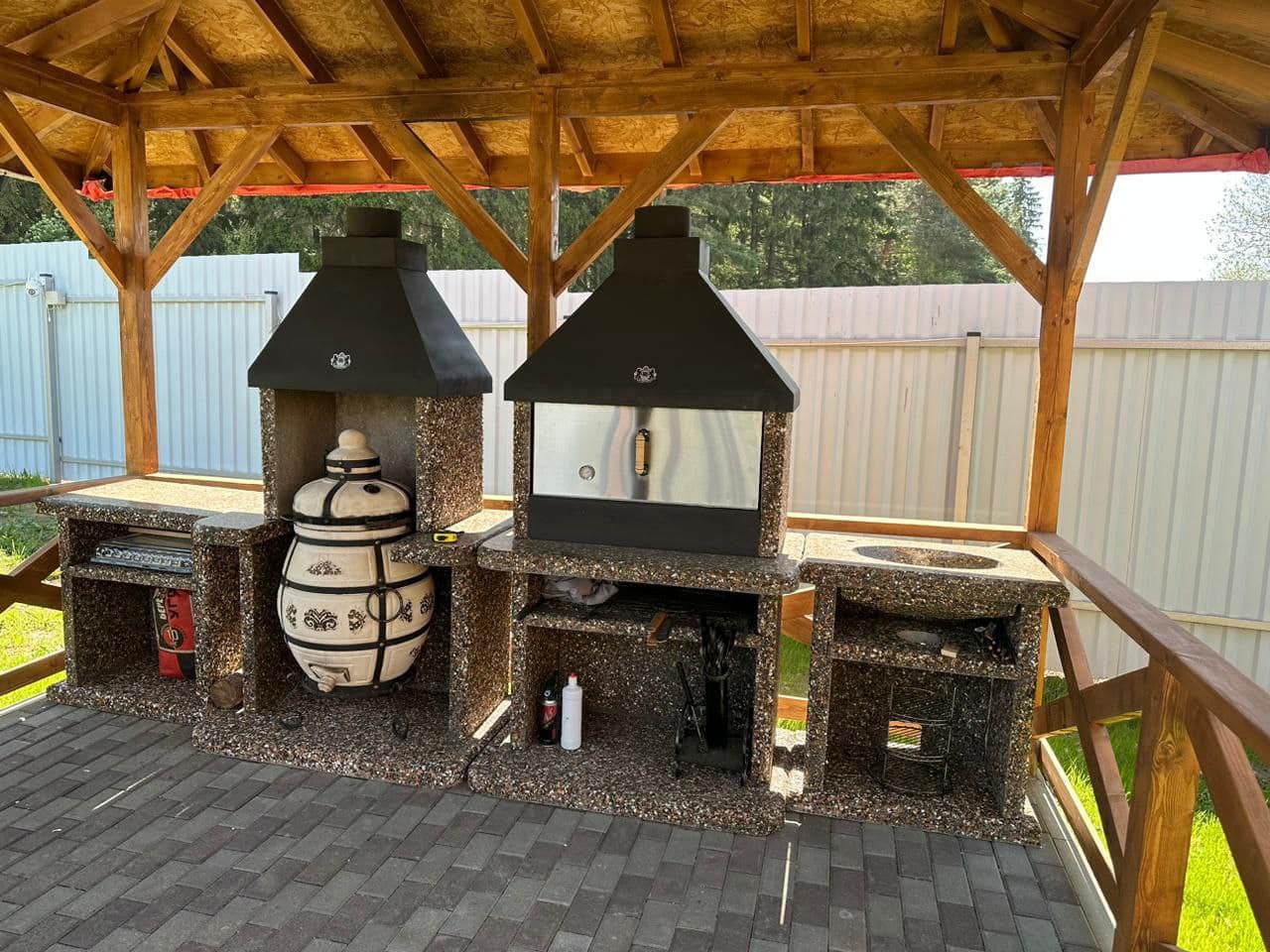 Подставка под тандыр с дымосборным куполом “Комфорт” — идеальное решение для приготовления блюд в беседке или закрытом помещении! Дымосборник эффективно отводит дым и пар, сохраняя воздух чистым, а натуральный камень гарантирует прочность и долговечность.Фактура «Горные цветы»: Мрамор, яшма, златолит, змеевик и кремний создают пеструю палитру оттенков — от бежевого до изумрудного. Ассоциируется с горными пейзажами, добавляя природной эстетики в интерьер.Преимущества:✔️Купол устраняет дым, делая готовку комфортной даже в закрытых пространствах.✔️Устойчивость к высоким температурам и влаге.✔️Быстрая сборка за 20 минут без фундамента.