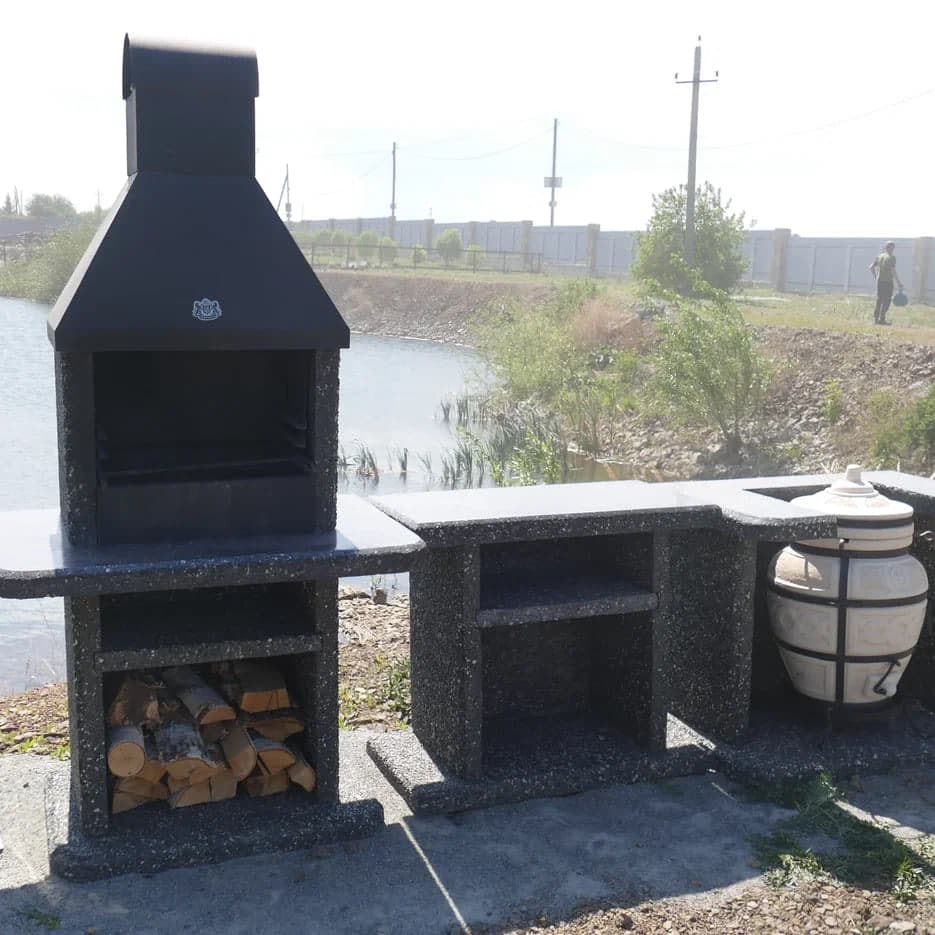 Подставка под тандыр для ценителей таинственности! Натуральный камень с защитой от мороза и влаги обеспечит долговечность, а стильный дизайн — восхищение гостей.Фактура «Ночное небо»: Габбро-диабаз и мрамор создают глубокий черно-серый градиент с серебристыми вкраплениями, как звёзды на ночном небе.Преимущества:✔️Устойчивость к механическим повреждениям.✔️Быстрая сборка без сложного монтажа.✔️Идеально дополняет каменные барбекю-комплексы.