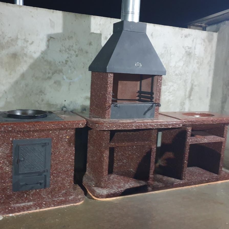 Барбекю комплекс для беседки или открытых пространств из яшмы с фактурой «Марс» — для любителей необычного дизайна. Готовьте шашлык, стейки или овощи на 3 уровнях жара, а полки под топкой используйте для хранения дров. Устойчивость к влаге и морозу делает её идеальной для дачи.Преимущества:✔️ Эксклюзивный дизайн — стиль «хай-тек» для современных участков.✔️ Быстрый розжиг — угли нагреваются за 10–15 минут.✔️ Универсальность — установка в помещении или на улице.