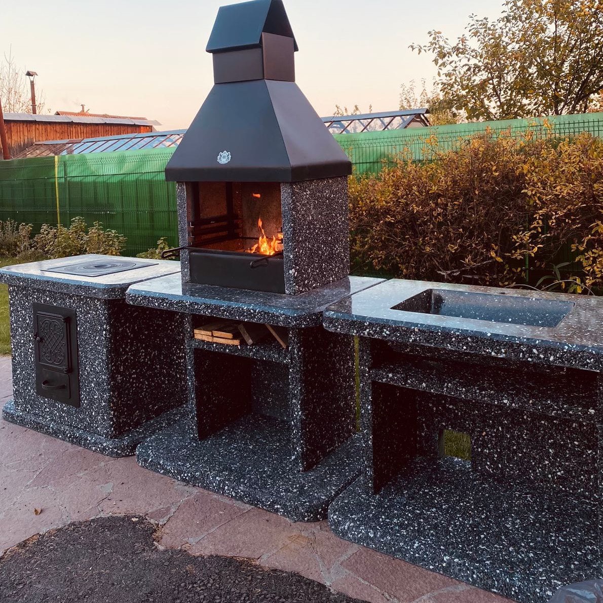 Шашлычница каменная из габбро-диабаза и мрамора — это глубина ночного неба на вашем участке. Производство барбекю комплексов с лакированной поверхностью и 3 уровнями жара делает её практичной и стильной. Ухаживайте за печью легко, а угли храните на полках под топкой.Преимущества:✔️ Контрастный дизайн — сочетание черного и белого камня.✔️ Термоизоляция — безопасна для установки рядом с деревом.✔️ Простота ухода — лакированная поверхность не впитывает грязь.