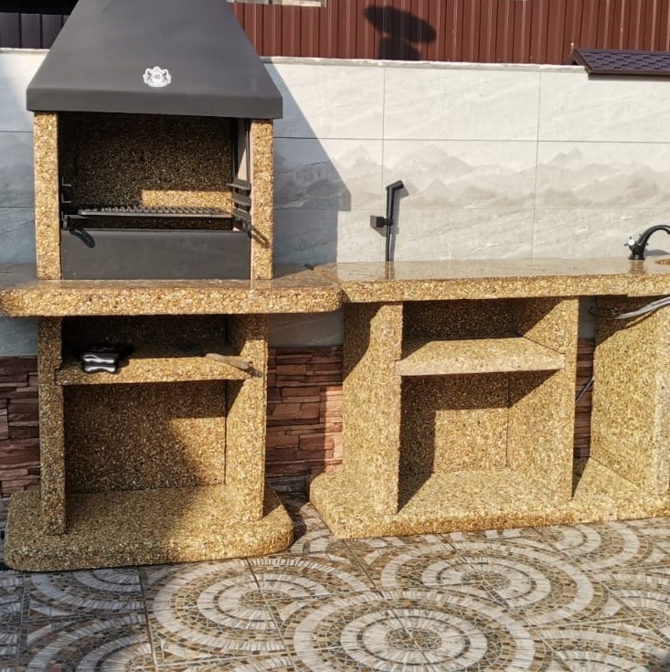 Печь шашлычная в фактуре «Золотая осень» из златолита — это уютные вечера с осенним оттенком на вашем участке. Модульный барбекю комплекс с 3 уровнями регулировки жара и полками для дров станет центром семейных посиделок. Установите её в беседке или на террасе — золотистый оттенок камня добавит тепла в дизайн.Преимущества:✔️ Эргономичные полки — удобное хранение дров и аксессуаров.✔️ Компактность — не занимает много места.✔️ Устойчивость к влаге — не боится дождя и снега.