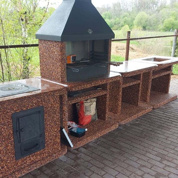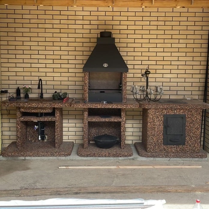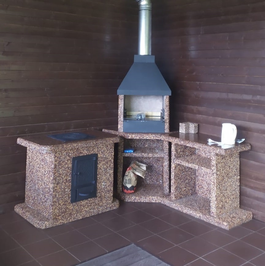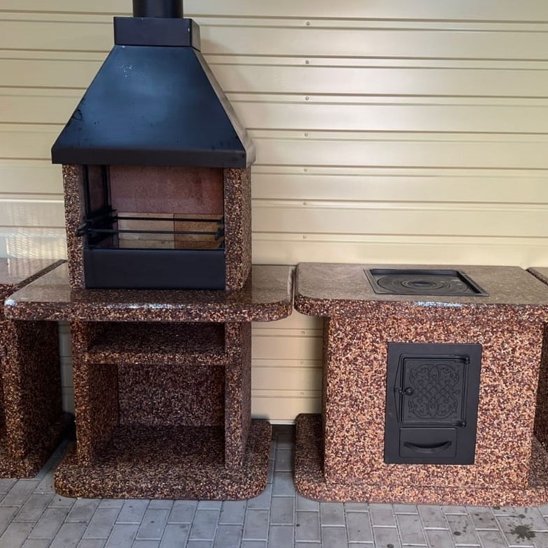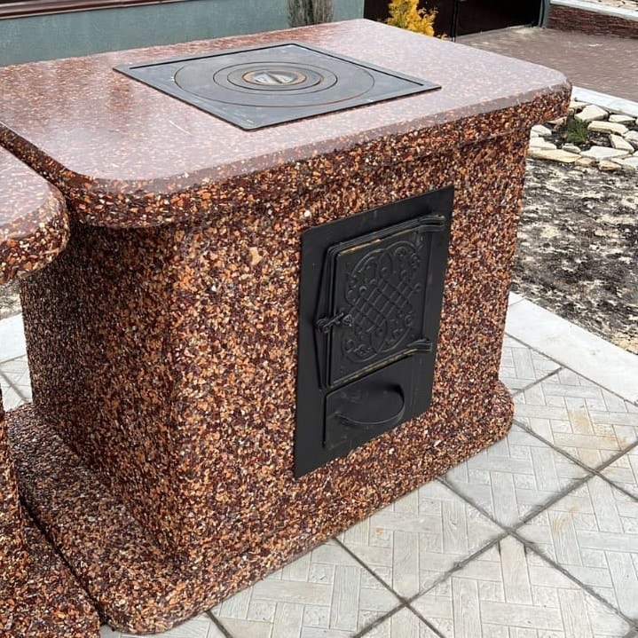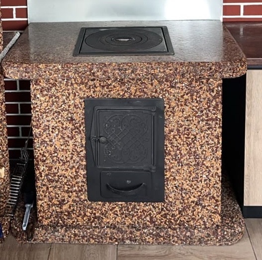 Печь под казан в фактуре «Песчаная буря» — воплощение динамики природы. Яшма, златолит и кремний создают песочные переливы. Чугунная плита, металлическая топка и съемные кольца, позволят приготовить любые кулинарные шедевры в казане Преимущества: Устойчивость — вес 610 кг и каменное основание, фундамент не нужен Безопасность — стенки не нагреваются. Универсальность — для улицы и помещений. Закажите печь под казан в фактуре «Песчаная буря» — готовьте с размахом!