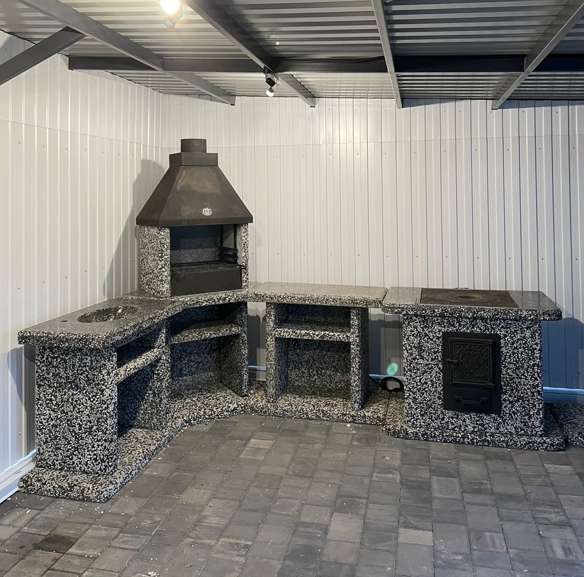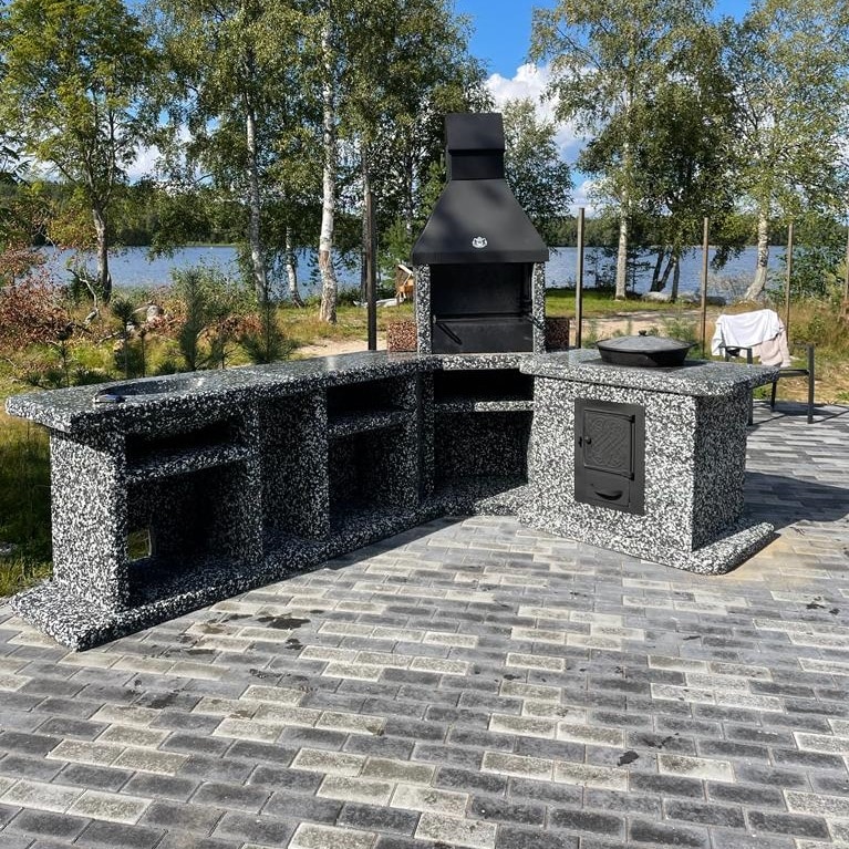 Печь Барбекю Угловая – Черное и белое