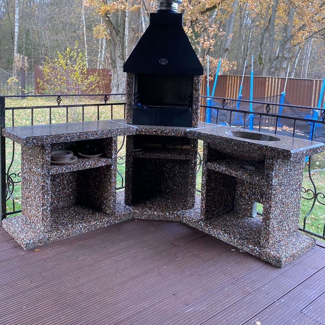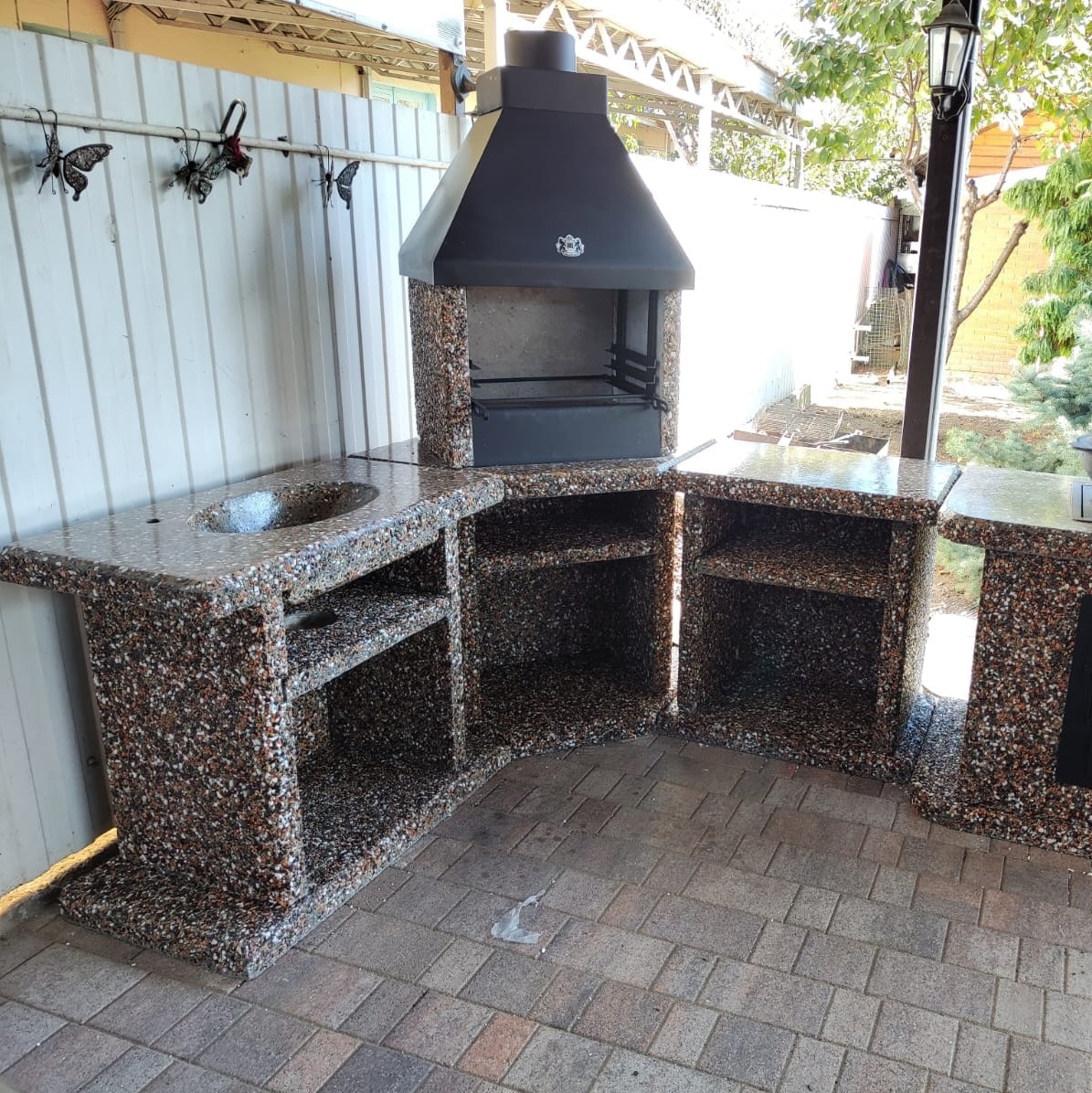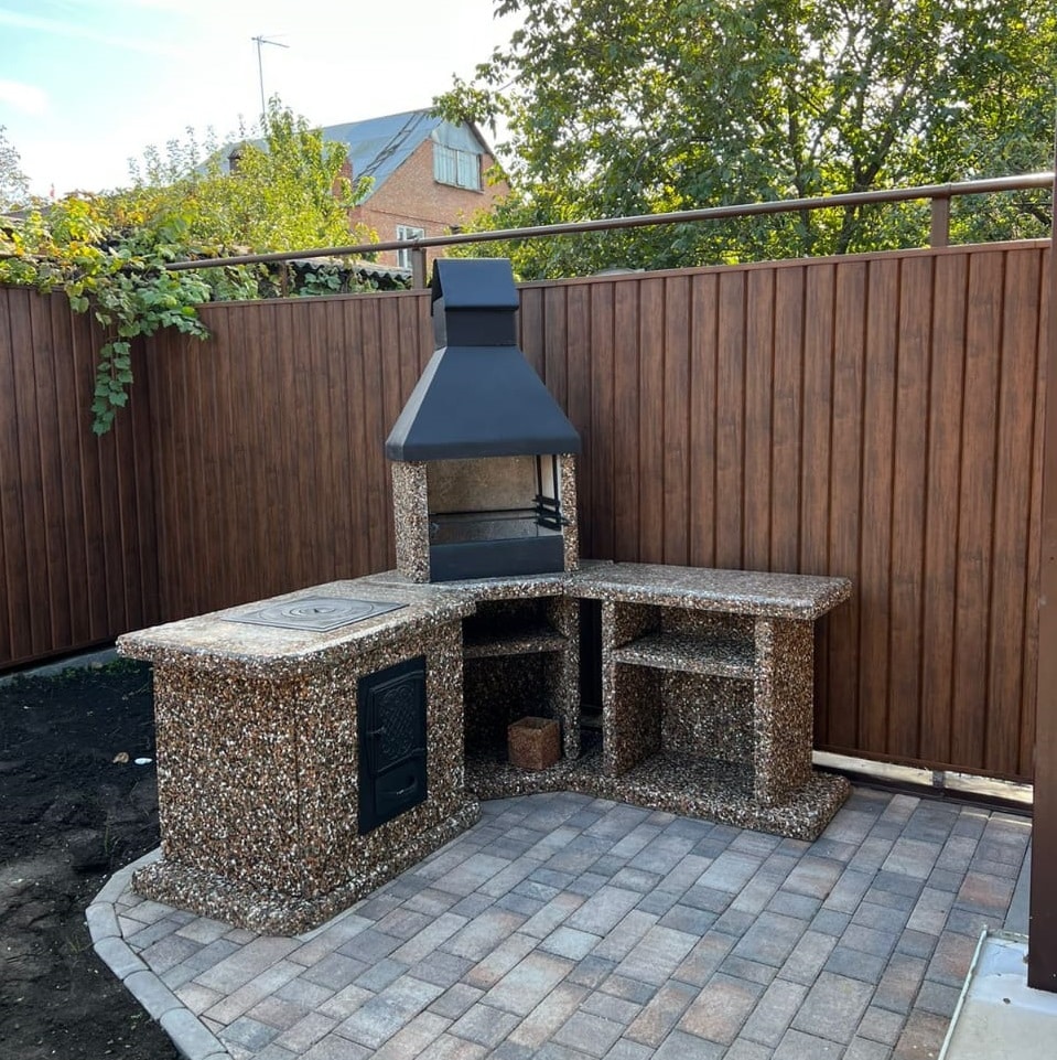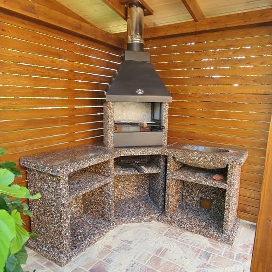 Печь барбекю «Комфорт» угловая в фактуре «Горные цветы» — готовое решение для любителей эстетики и функциональности. Многоцветный узор из мрамора, яшмы, златолита, змеевика и кремния напоминает горные склоны. Готовая Барбекю печь из камня — это выбор для тех, кто ценит природную красоту и удобство угловой конструкции.Преимущества:Угловая печь барбекю — идеально для компактных беседок и террас.Столешница покрытая лаком — устойчива к влаге, жиру и царапинам.3 уровня жара — от медленного томления до быстрой жарки.