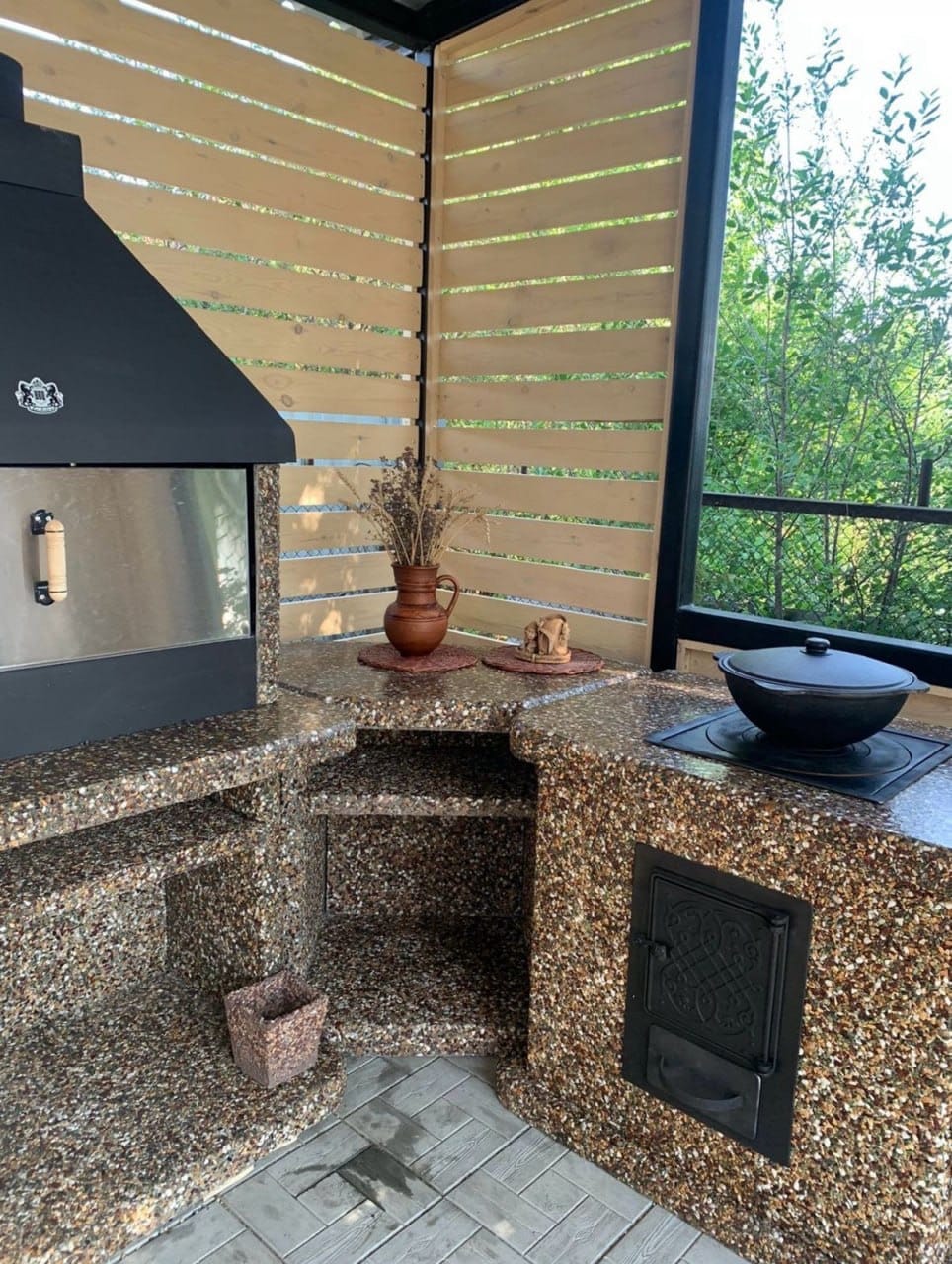 Угловой разделочный стол для барбекю-комплекса — ваш надежный помощник на кухне и на открытом воздухе! Ударопрочная столешница 7 мм с армированием выдерживает даже активную нарезку, а удобная высота 850 мм бережет спину. Фактура «Горные цветы» – Камни мрамор, яшма, златолит, змеевик и кремний создают природный узор в бежево-зеленых тонах, напоминающий горный ландшафт.Преимущества:✔️Устойчив к царапинам, влаге и перепадам температур.✔️Основание заменяет фундамент — монтаж без сложных работ.✔️2 полки для хранения — все необходимое под рукой.Закажите угловой разделочный стол «Горные цветы» и добавьте в корзину — прочность и эргономика в вашем распоряжении!