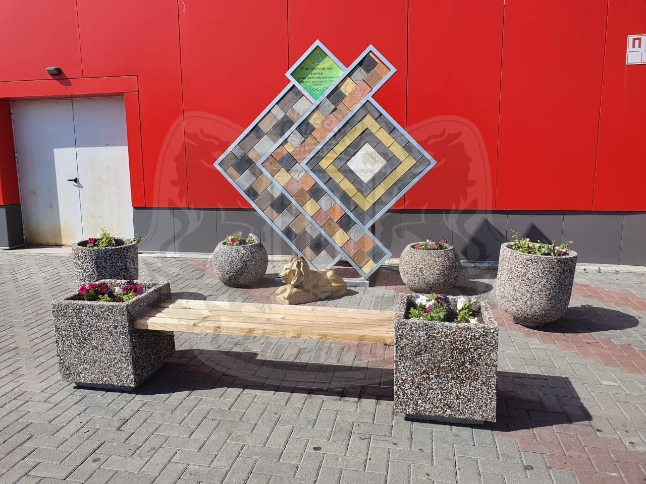 Уличная скамья из натурального камня и сосны ДхШхВ: 2500х500х450мм Вес 275кг Изделия Разнообразие цвета и фактур В составе полудрагоценные камни из Уральских гор (Яшма Златолит Змеевик Кремний Мрамор Габбро-диабаз Фельзит) Качественные изделия. Бетон прочности М600 и морозостойкости F300-350 Возможности Изготовление нестандартных дизайнерских решений Собственное производство под любой запрос Ежегодно благоустраивается более 100 000 в.м скверов и парков Более 3000 довольных клиентов по благоустройству собственных участков Подход Личный менеджер – сопровождение на всех этапах сотрудничества от разработки сметы до выполнения на объекте и даже после Гибкие индивидуальные условия сотрудничества включающие Ваш интерес Стоимость и порядок оплаты зависят от объема работ. Скидки до 30% 10 лет безупречной работы профессионалов
