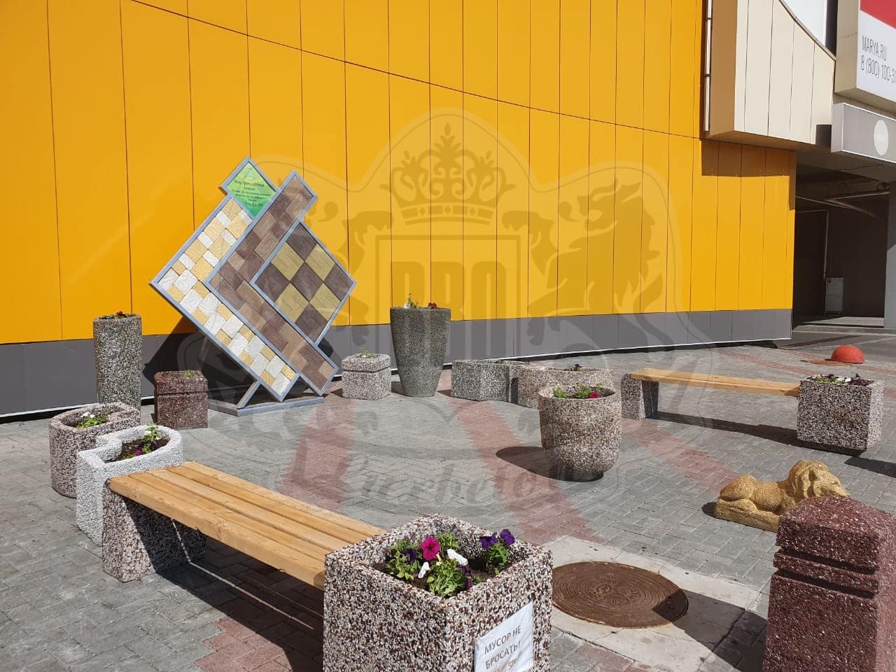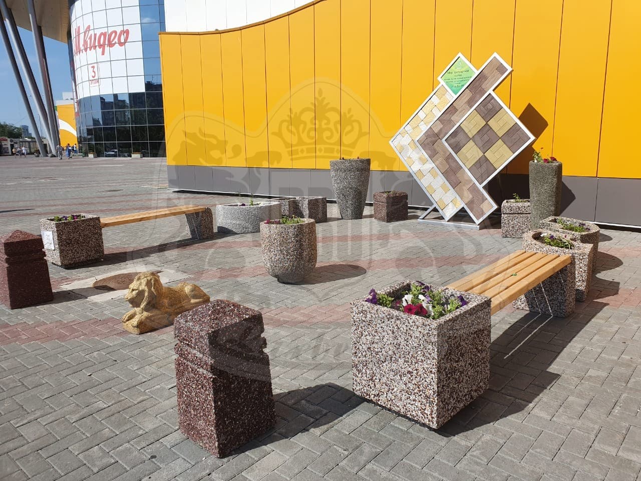 Уличная скамья из натурального камня и сосны ДхШхВ: 2000х400х450мм Вес 255кг Изделия Разнообразие цвета и фактур В составе полудрагоценные камни из Уральских гор (Яшма Златолит Змеевик Кремний Мрамор Габбро-диабаз Фельзит) Качественные изделия. Бетон прочности М600 и морозостойкости F300-350 Возможности Изготовление нестандартных дизайнерских решений Собственное производство под любой запрос Ежегодно благоустраивается более 100 000 в.м скверов и парков Более 3000 довольных клиентов по благоустройству собственных участков Подход Личный менеджер – сопровождение на всех этапах сотрудничества от разработки сметы до выполнения на объекте и даже после Гибкие индивидуальные условия сотрудничества включающие Ваш интерес Стоимость и порядок оплаты зависят от объема работ. Скидки до 30% 10 лет безупречной работы профессионалов