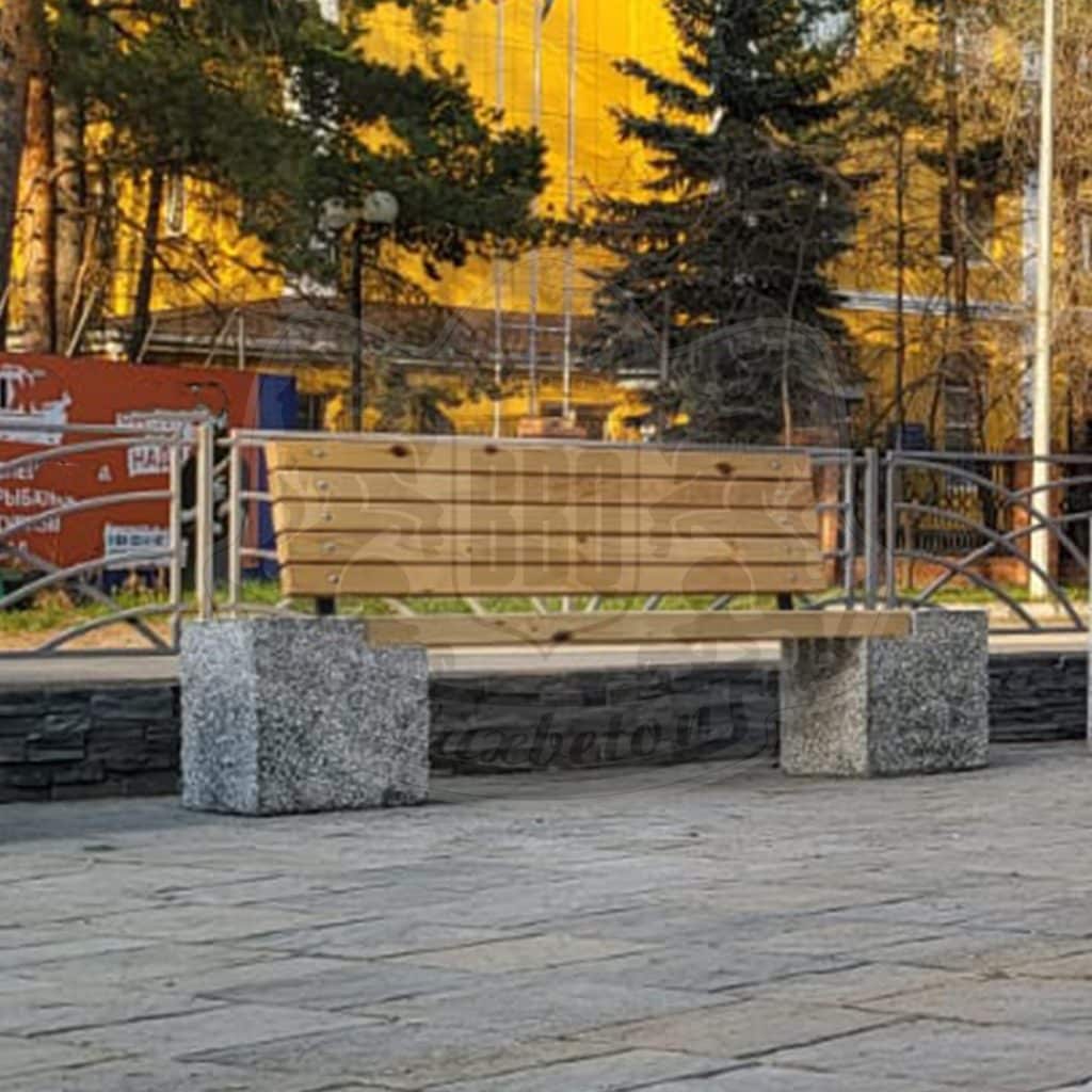 Уличная скамья из натурального камня и сосны со спинкой 730мм ДхШхВ: 2000х400х460мм Вес 250кг Изделия Разнообразие цвета и фактур В составе полудрагоценные камни из Уральских гор (Яшма Златолит Змеевик Кремний Мрамор Габбро-диабаз Фельзит) Качественные изделия. Бетон прочности М600 и морозостойкости F300-350 Возможности Изготовление нестандартных дизайнерских решений Собственное производство под любой запрос Ежегодно благоустраивается более 100 000 в.м скверов и парков Более 3000 довольных клиентов по благоустройству собственных участков Подход Личный менеджер – сопровождение на всех этапах сотрудничества от разработки сметы до выполнения на объекте и даже после Гибкие индивидуальные условия сотрудничества включающие Ваш интерес Стоимость и порядок оплаты зависят от объема работ. Скидки до 30% 10 лет безупречной работы профессионалов