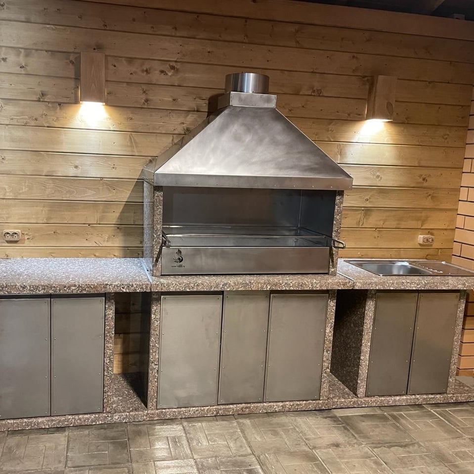Разделочный стол с мойкой отлично дополнит вашу барбекю зону