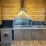 Зона столешницы из цельного гранита устойчива к любым механическим повреждениям. Можно не боятся ее поцарапать или заляпать жиром, что часто бывает в барбекю комплексах для приготовления на огне