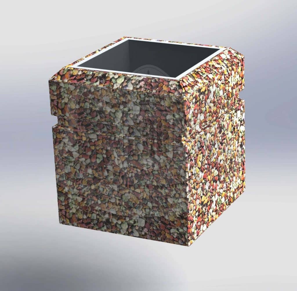 Уличная урна из натурального камня ДхШхВ: 400х400х450мм Вес общий: 130кг Изделия Разнообразие цвета и фактур В составе полудрагоценные камни из Уральских гор (Яшма Златолит Змеевик Кремний Мрамор Габбро-диабаз Фельзит) Качественные изделия. Бетон прочности М600 и морозостойкости F300-350 Возможности Изготовление нестандартных дизайнерских решений Собственное производство под любой запрос Ежегодно благоустраивается более 100 000 в.м скверов и парков Более 3000 довольных клиентов по благоустройству собственных участков Подход Личный менеджер – сопровождение на всех этапах сотрудничества от разработки сметы до выполнения на объекте и даже после Гибкие индивидуальные условия сотрудничества включающие Ваш интерес Стоимость и порядок оплаты зависят от объема работ. Скидки до 30% 10 лет безупречной работы профессионалов